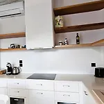 Denne strandudsigte feriebolig indeholder et udstyret køkken med faciliteter. Fra Mykonos lufthavn er der 15 minutters kørsel til denne indkvartering. Bil er også tilgængelige til leje.